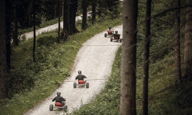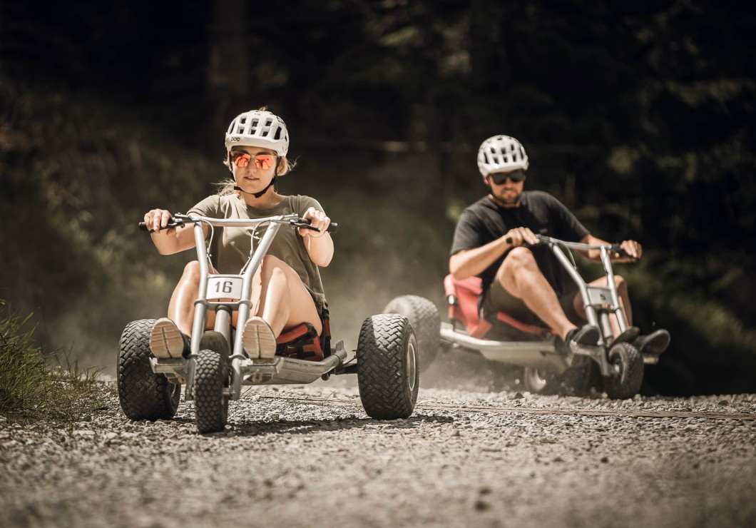 Carts auf dem Berg geht nicht, denken Sie? Doch, auf jeden Fall! Kleine und große Piloten können hier durch sattgrüne Wälder die Forststraßen hinuntersausen und sich den Wind um die Nase wehen lassen. Das bringt nicht nur gute Laune und ein Gefühl von Freiheit, sondern ist auch noch umweltfreundlich, denn die im Seifenkistendesign erbauten Carts haben keinen Motor.