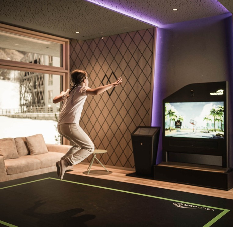 Valo Jump ist ein einzigartiges interaktives Spiel, das Trampolinspringen mit der digitalen Spielwelt verbindet. In Echtzeit nimmt ein Motion-Sensor die Bewegungen auf dem Trampolin auf und übersetzt sie in die verschiedensten spannenden Spiele.