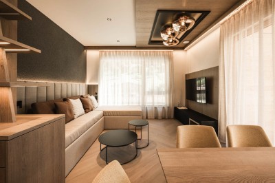 As a power stone, the amethyst clears excess thoughts, provides inner peace and strengthens confidence in one's own abilities. Exactly what you need for a joint holiday. The furnishings of this family room with separate children's room reflect the reddish-purple colour of the stone. Located in the main building, the room offers a view towards the valley head or the hotel garden, not to mention the mountains.