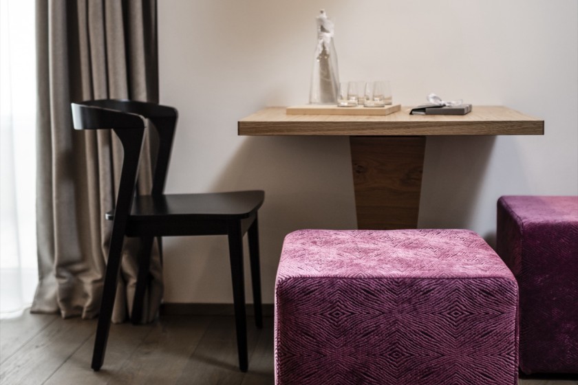 The impressive South Tyrolean Dolomites owe their name to this bright mineral. It is also said that dolomite promotes a positive attitude to life. And who would not fancy that? Located in the main building of the Feuerstein, overlooking the mountains, this spacious double room offers a view towards the valley head and provides this same joy and positivity to smaller families or families with little children.