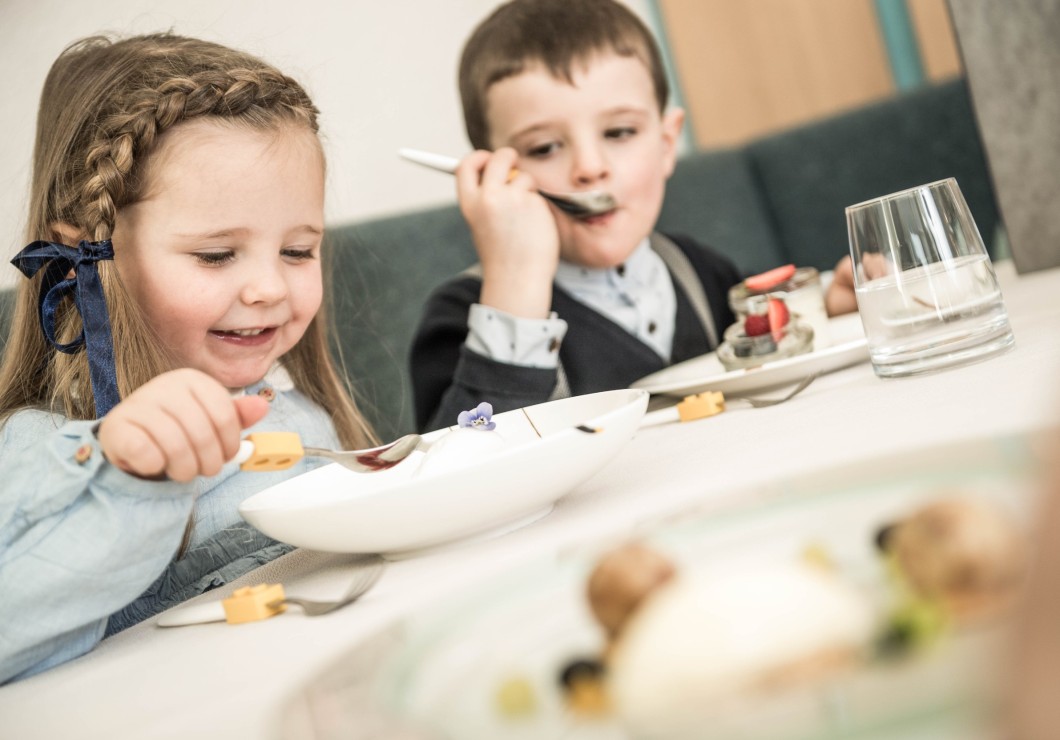 Because we believe that children are the gourmets of tomorrow. With great attention to detail and a flair for young taste preferences, we have created a menu that is child-orientated, creative and at the same time culinary sophisticated. Between hearty children's laughter, lovingly served courses and the relaxed atmosphere of our restaurant, the result is an evening full of enjoyment, closeness and familiar ease - exclusive but informal. An experience that brings the whole family together and adds an enjoyable facet to a family holiday at the Feuerstein.